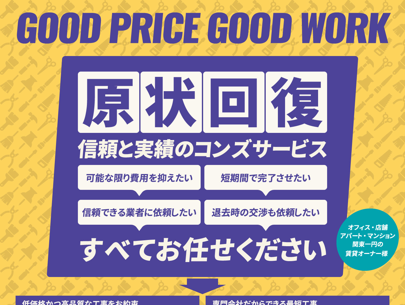 関東一円のオフィス、店舗、マンションなどの賃貸オーナーを対象にハウスクリーニングのサービス訴求用LPです。様々な制約の都合上、製品や現場写真といったビジュアル素材が使用できない事情を踏まえページ全体をイラストと文字情報のみで構成し、ポップな色調と可読性を考慮したレイアウトで打ち出し要素をシンプルにまとめました。