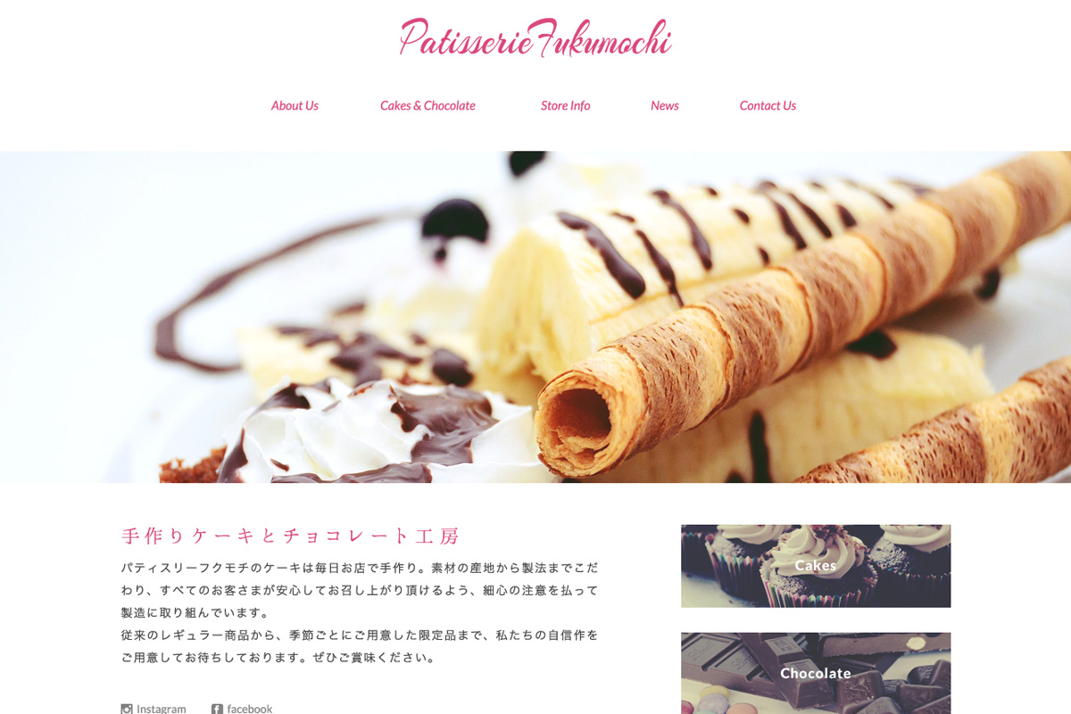 洋菓子販売店の店舗ホームページ。メニューボードやショップカード、バッグなど店舗グッズひとつとして制作にあたり、穏やかでゆったりとした時間の流れを感じさせる明るく開放的なトーンを基調に構築しています。