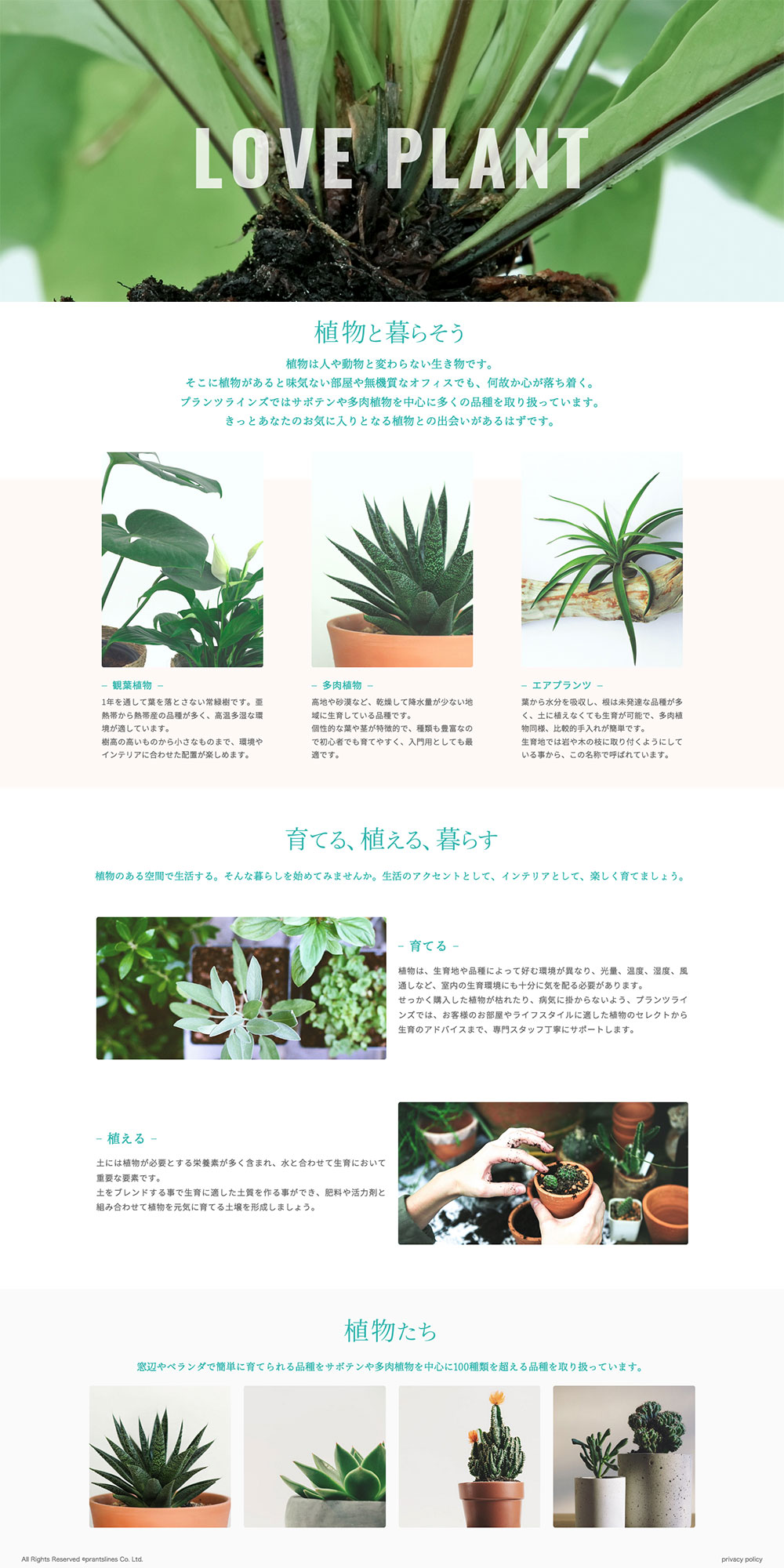 観葉植物およびインドアグリーン、ガーデニング用品販売会社のコーポレートサイトを制作。ブランドサイトとしての側面を強調し、将来開始予定のECサイトヘのハブとなる位置付けとして構築、暫定的に公開しました。