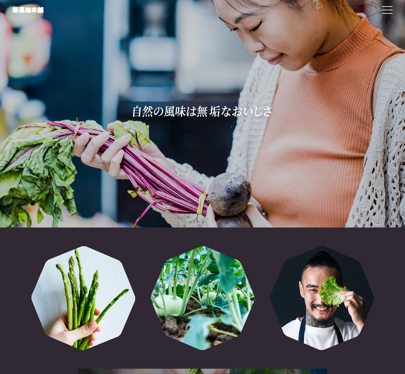全国の個人農家や家庭菜園が無農薬や肥料、土壌、水にこだわって生産した野菜の販売を目的としたECサイトへの誘導用PRページを制作しました。コンセプトの紹介や見込み顧客をECサイトへ誘導する自然な導線を構築するため、無駄な装飾を極力省き、モバイルファーストを念頭においたシンプルなレイアウトで構成しています。